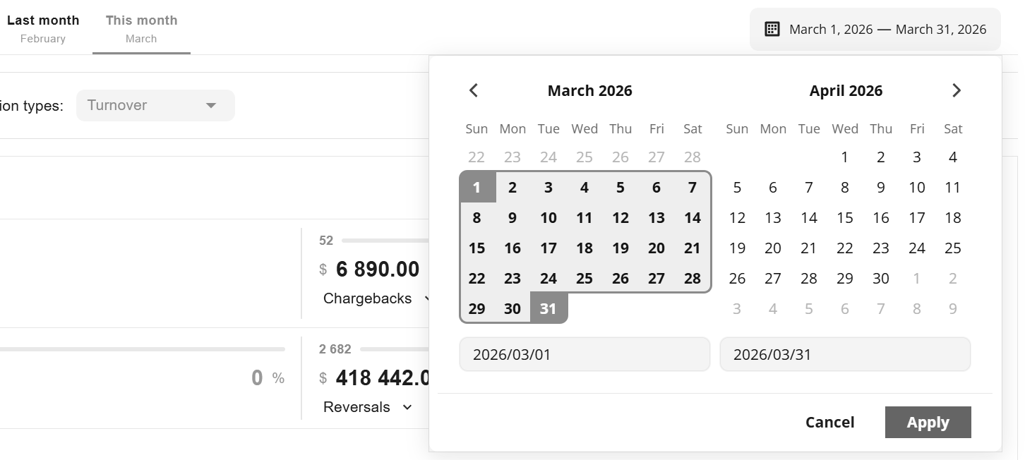 The sum of all successful sale, capture, reversal (refund) and transfer operations |