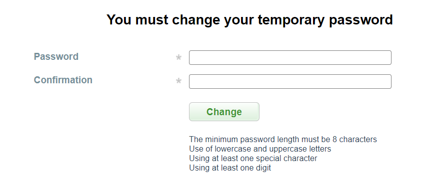 Upon initial access to Neogate UI, after logging in, the Merchant employee will be asked to create and enter a new password.